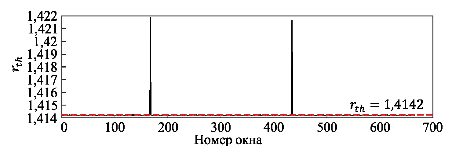 Шаг 4: Вычисление порога. Максимальная ошибка реконструкции rth=maxkrk, полученная при обучении, является порогом срабатывания для обнаружения АКФ, непохожих на нормальные.