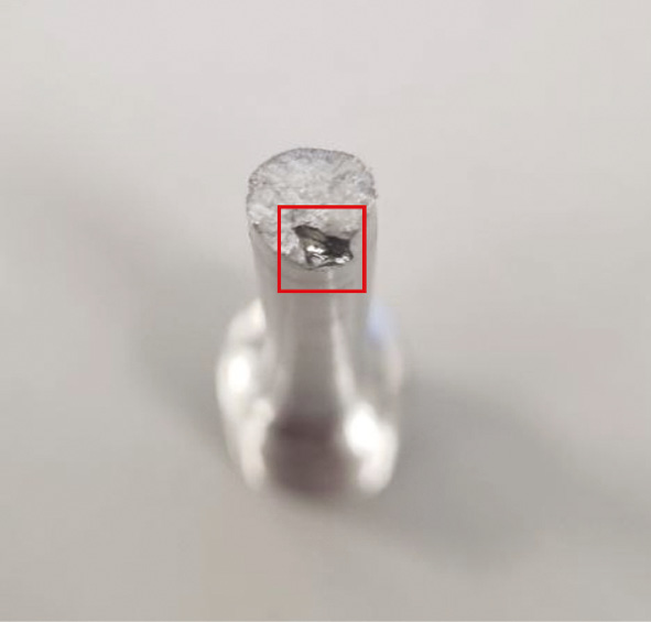 Рис. 6. Дефект на изломе после механических испытаний.