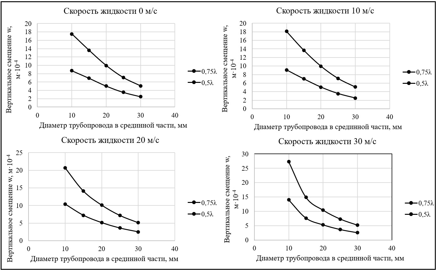 7. Fig. 6. Dependence graphs (vertical displacement and pipeline diameter).