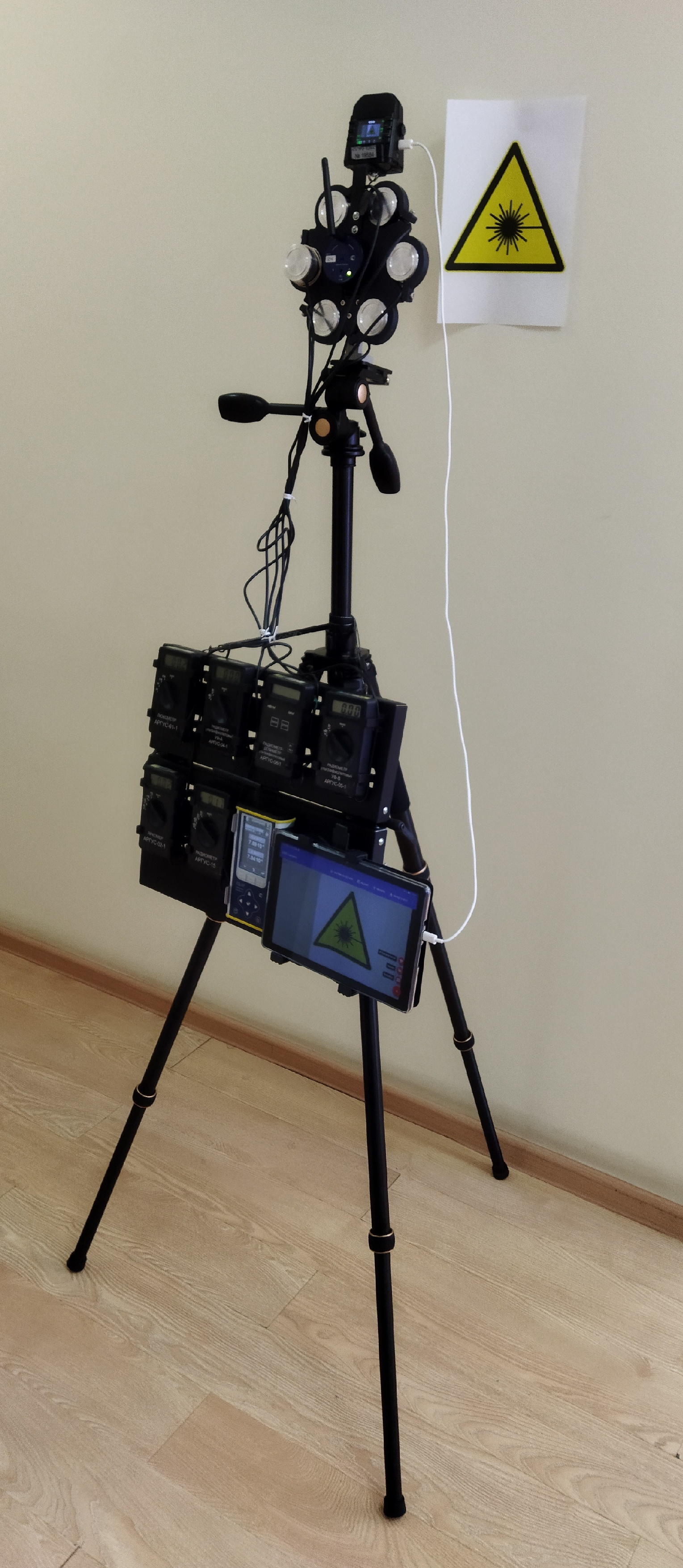 Для комплексной количественной оценки энергетических характеристик ТСОС сотрудниками ООО НТО «ИРЭ-Полюс» был разработан специализированный измерительный стенд, который включает в себя приборы серии АРГУС: радиометры, люксметр, яркомер и лазерный дозиметр. Фотография стенда приведена на рис. 4 [6].