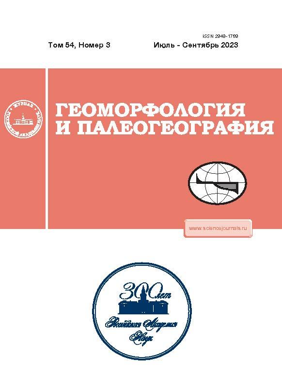 The study of the geomorphological and sedimentary systems forming at mouth of large rivers flowing into the inland seas and lakes of the arid zone shows that they have passed a long evolutionary path of development, repeatedly accumulating and reworking alluvial deposits depending on the position of the receiving reservoir level. Following the level fluctuations, the rivers moved their deltas, Pleistocene relics of which are found in the range of absolute marks from +50 to –20 m on the shores of the Caspian Sea, from +50 to 110 m of the Aral Sea and from +370 to 400 m of Lake Balkhash. The Aral-Caspian arid zone is distinguished by following natural factors affecting the processes of delta formation: aridity of the climate, formation of river flow in the upper reaches and lack of inflow in the lower reaches, increased water turbidity and a huge runoff of suspended sediments, as well as significant influence of human economic activity associated with intensive irrigation. The most common morphogenetic type of river deltas on the coasts of intracontinental reservoirs of the arid zone are huge alluvial outflow cones in the form of extension deltas and “dry internal deltas” in the form of alluvial outflow cones. The delta arms and the lower reaches of the rivers of the arid zone are characterized by a high intensity of channel deformations due to weak resistance to erosion of fine-grained valley alluvial-proluvial deposits, high flow velocities and high saturation of the flow with suspended sediments. The oversaturation of the river flow with sediments usually leads to shallowing of the riverbed in high water and its gradual increase over the surrounding terrain. An increase in the bottom elevation and fast delta progradation provoke frequent breakthroughs of the riverbed shafts, a change in the direction of the flow of delta arms, the creation of new branching nodes and the formation of regional jointed deltas of the breakthrough type (delta blades) on the periphery of the old delta (subdelta according to American terminology). Partially superimposed or superimposed deltas can also form inside delta systems after the breakthroughs of channel shafts (or enclosing dams). The poor preservation of ancient deltas is noted due to intensive economic development and high dynamics of the coast and the hydrographic network of river deltas in conditions of huge runoff of suspended sediments and significant variability of the level of the receiving reservoir.