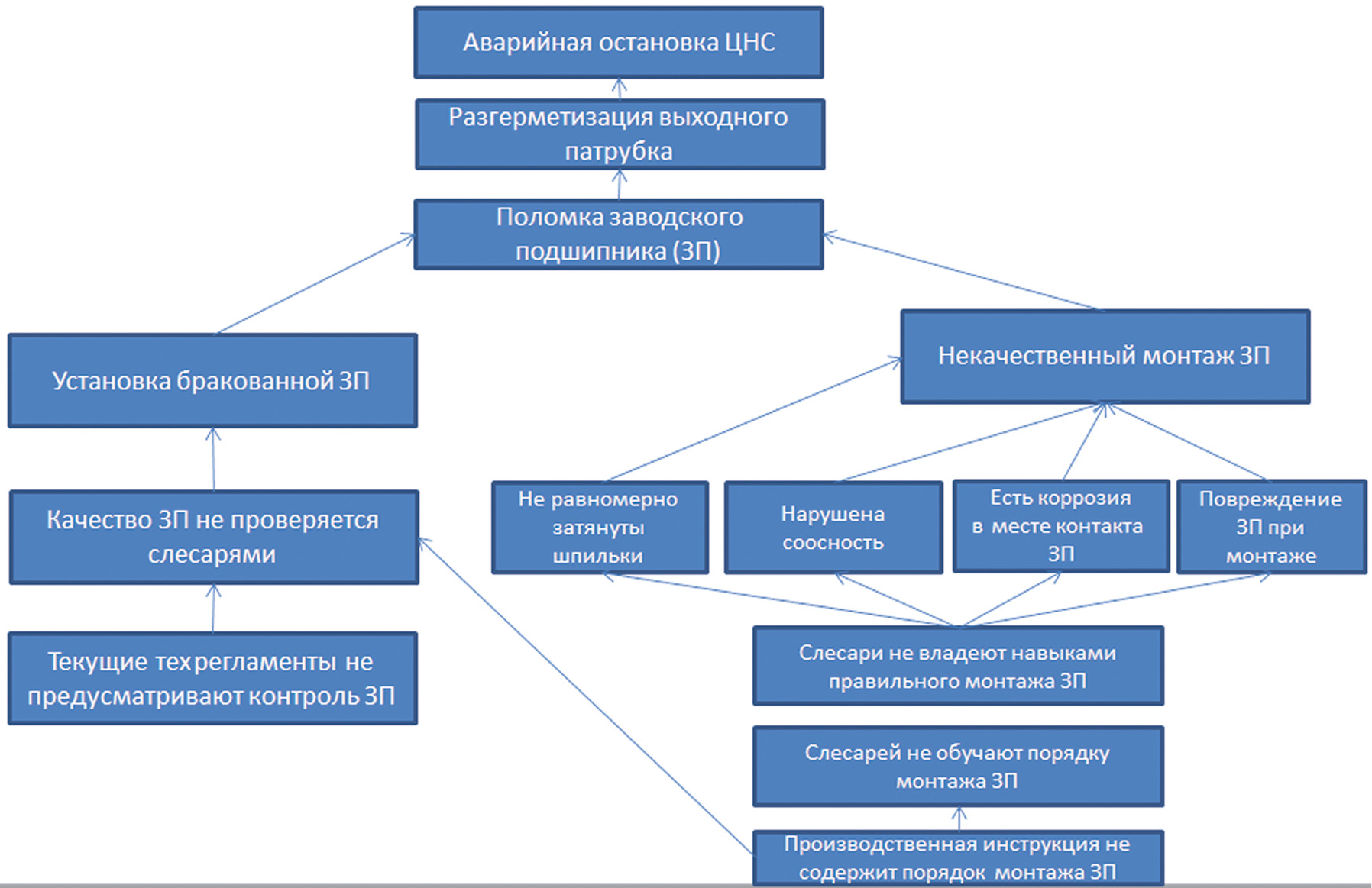 Рис. 2. Метод «5 почему» для выявления первопричины для аварийной остановки ЦНС