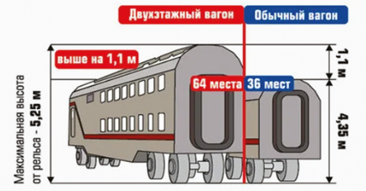 Рис. 1. Сравнительная схема одноэтажного и двухэтажного вагонов