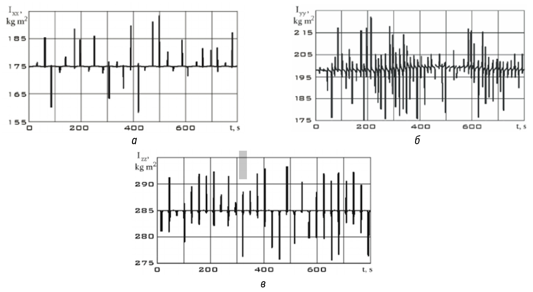 Результаты. Предложены графики изменения параметров вращательного движения и главных диагональных составляющих тензора инерции.