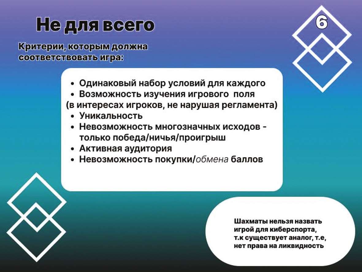 Во время исследования материалов и контента было выявлено, что для работы геймификации в киберспорте подходят не все турниры. Мы выявили следующие правила, которыми должна обладать игра для внедрения геймификации (рис. 1).