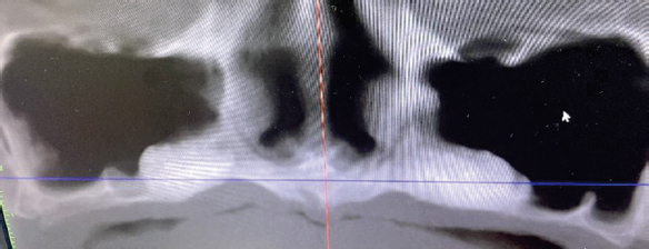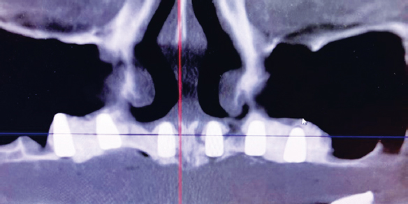 Fig. 3. Computed tomography of the upper jaw after bone augmentation in the maxillary sinuses and floor of the nasal cavity