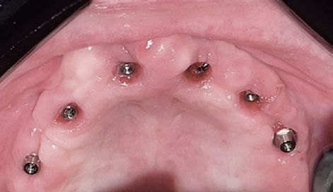 Рис. 7. Фотография мультиюнит абатментов через 2 нед после установки