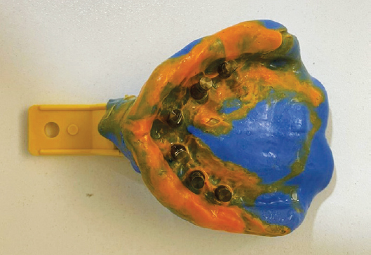 Рис. 11. Оттиск верхней челюсти с уровня мультиюнит абатментов открытой ложкой
