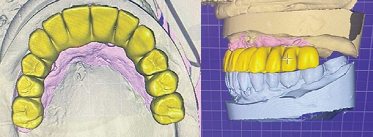 Fig. 16. Computer modelling of temporary restorations, view of the occlusal surface and left view