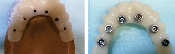 Fig. 18. Photographs of implant-supported temporary crowns in the oral cavity