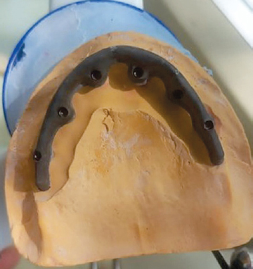 Fig. 23. View of the permanent structure before cementation with a titanium beam