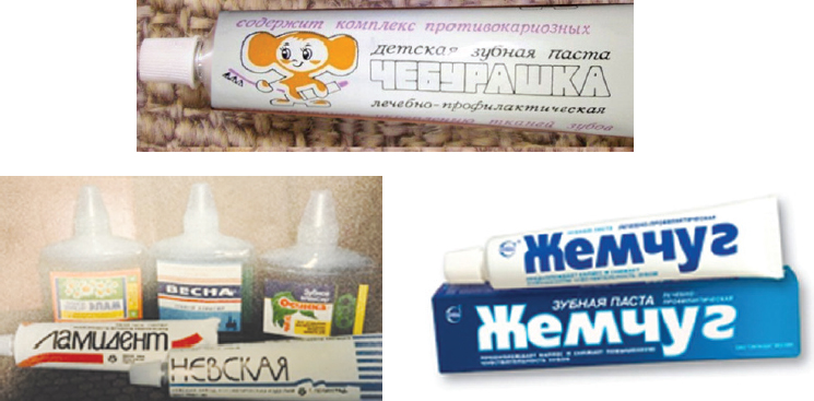 Fig. 5. Toothpastes “Cheburashka”, “Nevskaya”, “Zhemchug”