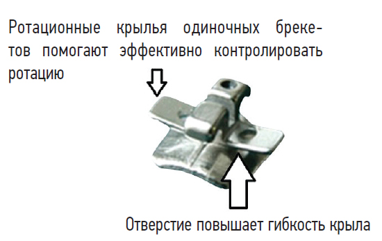 Рис. 1. Конструктивные особенности одиночного брекета системы Vari-Simplex Discipline Alexander .018'' паза