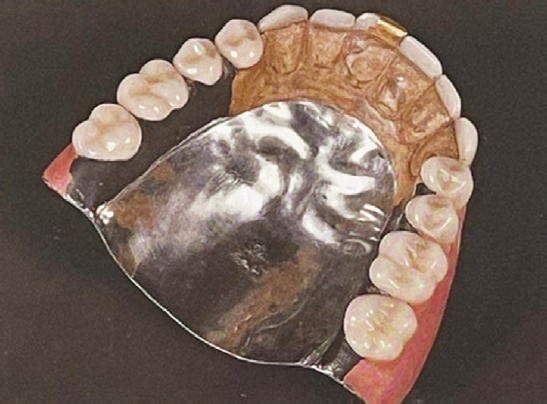 Fig. 7. Rubber maxillary denture with a stamped plate [15]